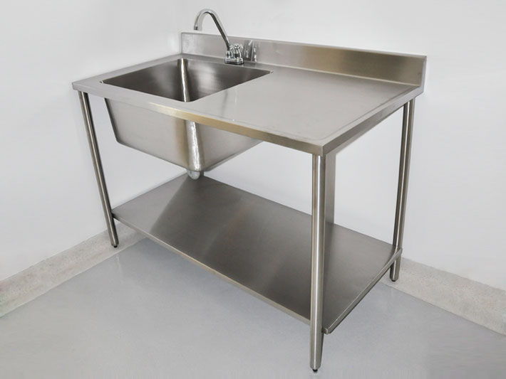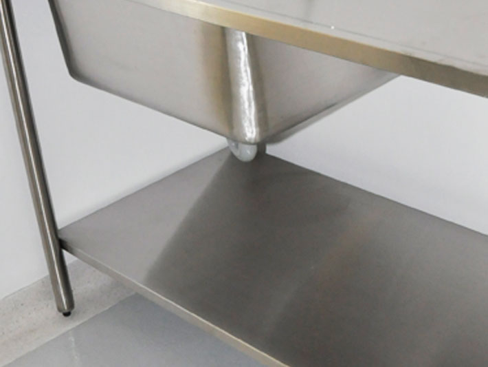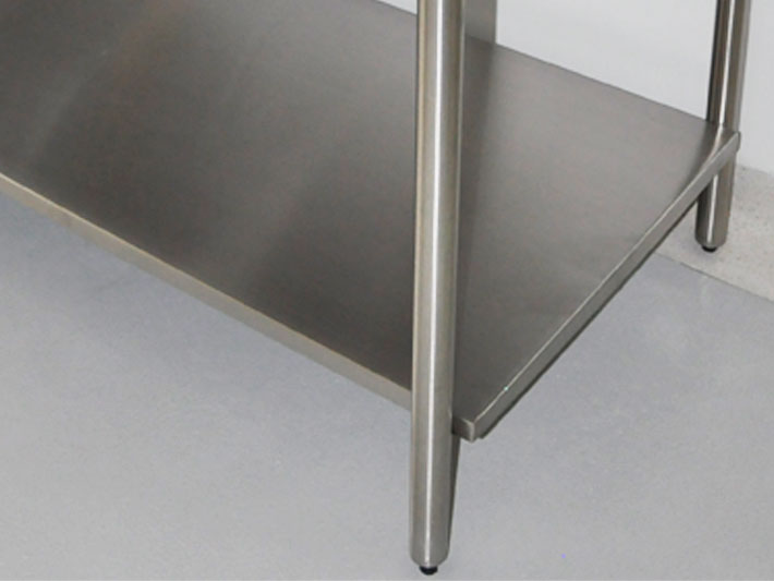 Mesas de trabajo industriales para laboratorios, restaurantes y hospitales Calibres 20 al 18 Reforzado en acero inoxidable Con entrepaño en acero